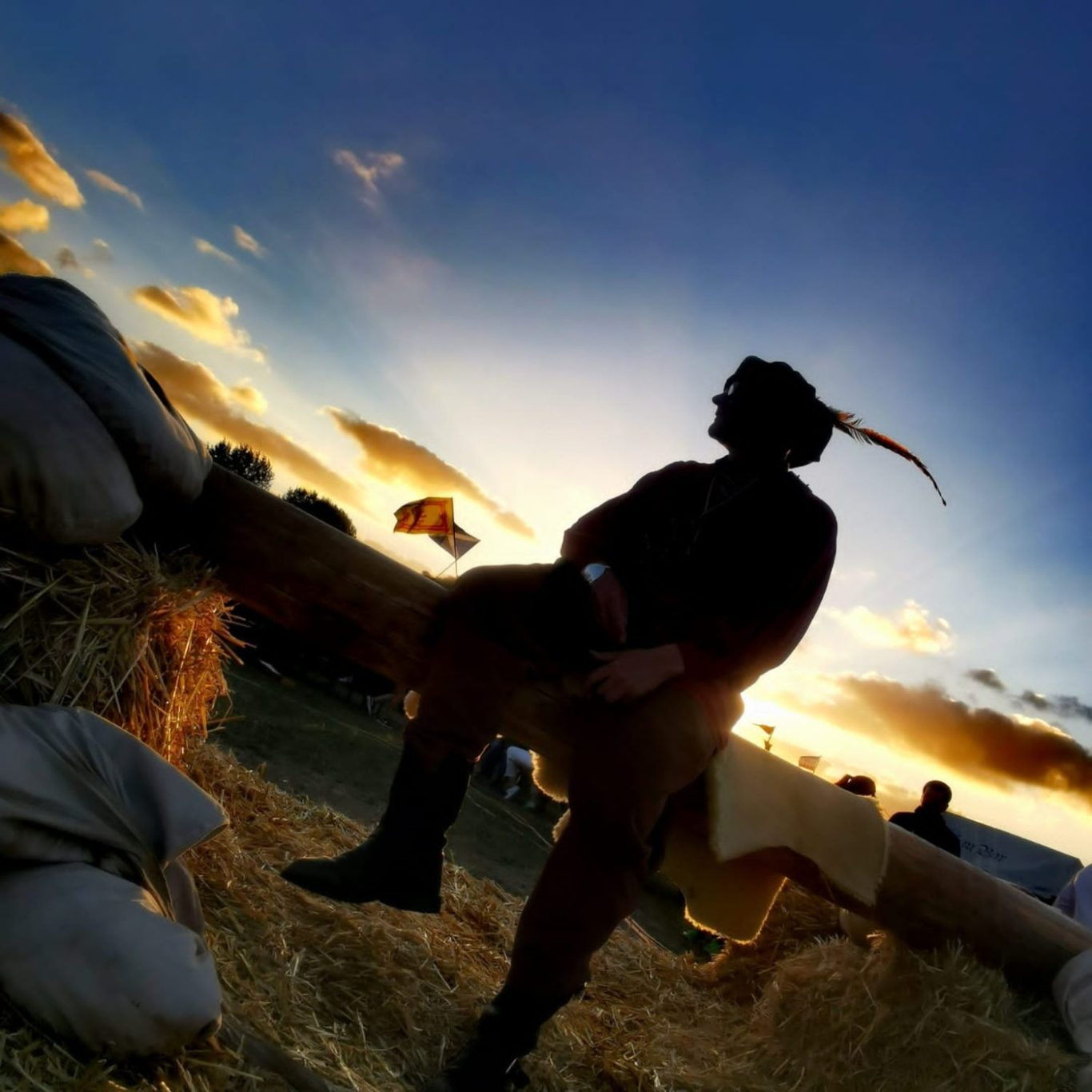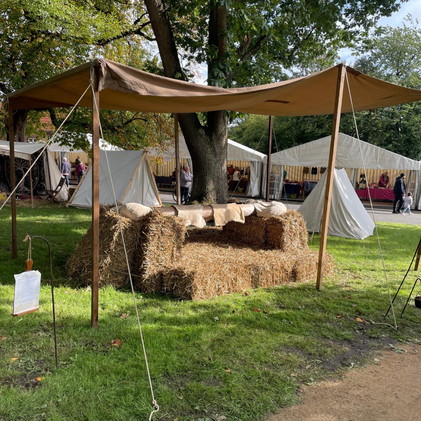 Bei der Tjoste treten zwei wackere Besucher auf einem rund drei Meter langen Baumstamm gegeneinander an. Der Stamm ist etwa einen Meter hoch gelagert, darunter sorgen Strohballen für eine weiche Landung.